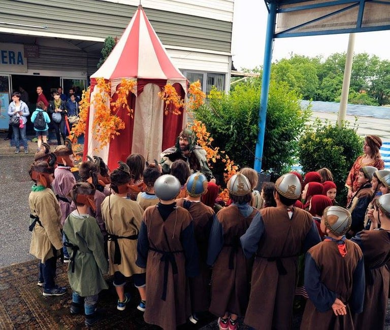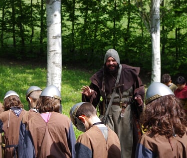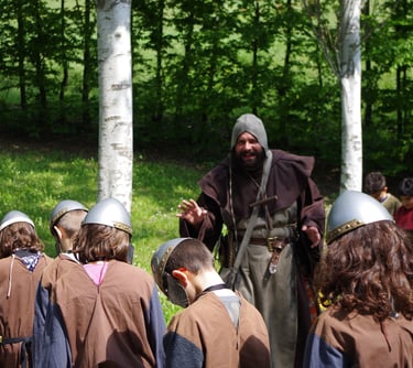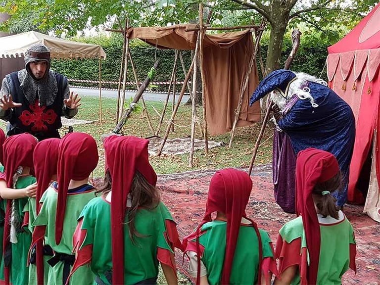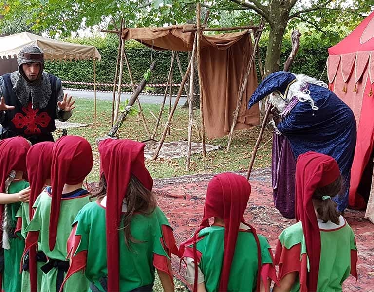 Bambini, ragazzi e adulti si trasformano in cavalieri, arcieri e nobili guerrieri e si sfidano in grandi battaglie, tornei e prove d'arme. Più storie, più costumi, più personaggi, nessuno guarda, tutti partecipano attivamente.