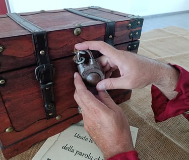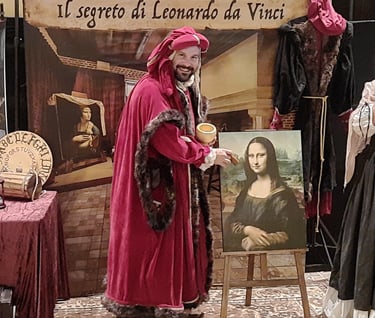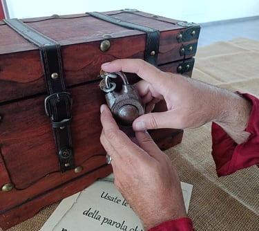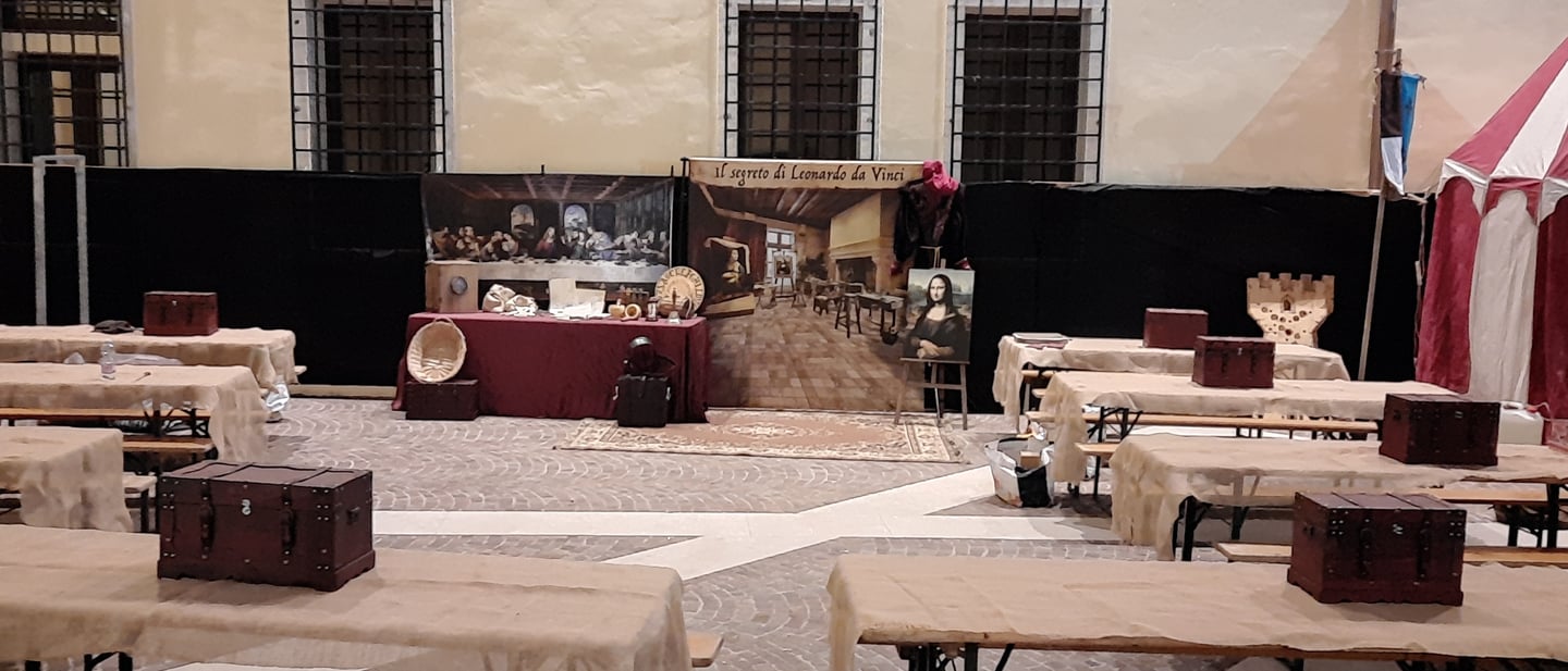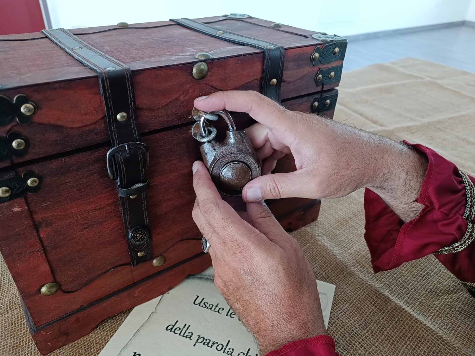 Un gioco di enigmi a squadre, portatile e a tema medievale, pensato per animare fiere storiche, sagre, feste di paese e rievocazioni. Nessuna stanza chiusa: il gioco si svolge direttamente nella vostra piazza, nel cortile del castello o in qualsiasi spazio del vostro evento.