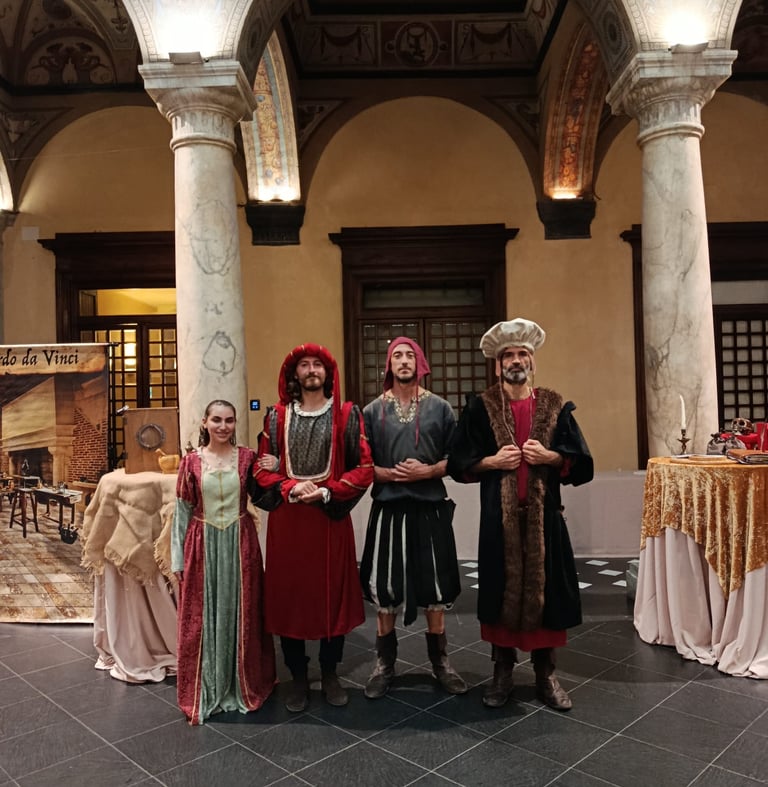 Scenografia: allestimento tematico con forzieri, pergamene, oggetti scenici e ambientazione completa